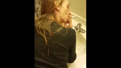 Cute Girl Fucked In Bathroom While She Smokes A Cigarette