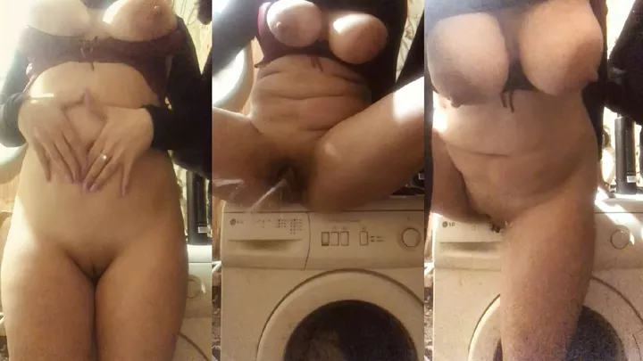 Big wet cunt moans loudly and squirts while sitting on a washing machine