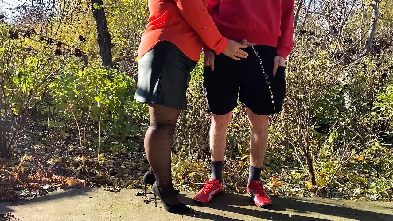 My blonde stepsister in red lingerie rides her lover with her big balls. POV Version