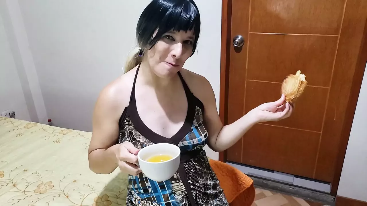 Sexy Girl Drinks Pee In A Cup While Eating A Cookie