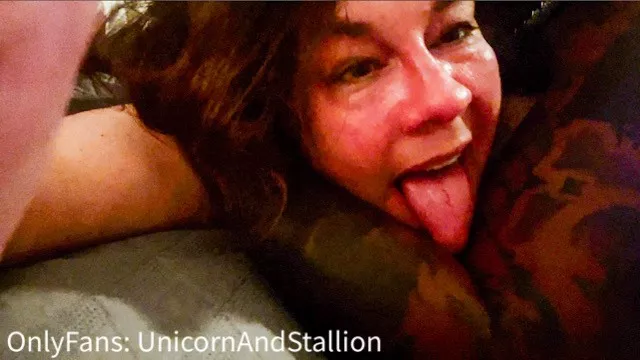Goth MILF in glasses and sweatpants squirts from dildo