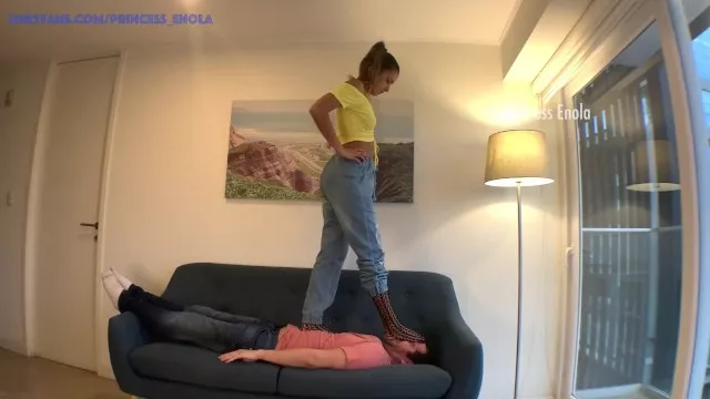 ENOLA - SOFT TRAMPLING SLAVE WITH STOCKINGS! JUMPING