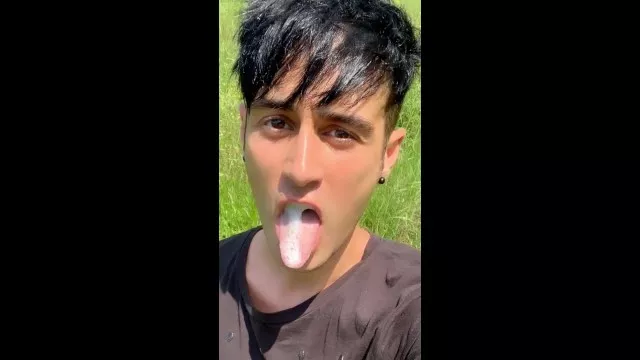 Chewing and swallowing ex - boyfriend cum ( solo cum eating after BJ vid )